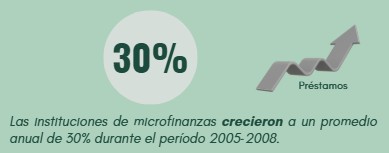 Entre los años 2005 y 2008 la economía peruana creció en promedio 8.8% anual, en tanto que el sistema de microfinanzas creció en promedio 30% (el sistema financiero <total> registró un crecimiento de 27%).